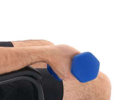 Place your forearm on an armrest or table, with your wrist hanging over the edge and your palm facing up. With a weight in your hand, lift the hand towards the ceiling. Lower slowly and repeat.